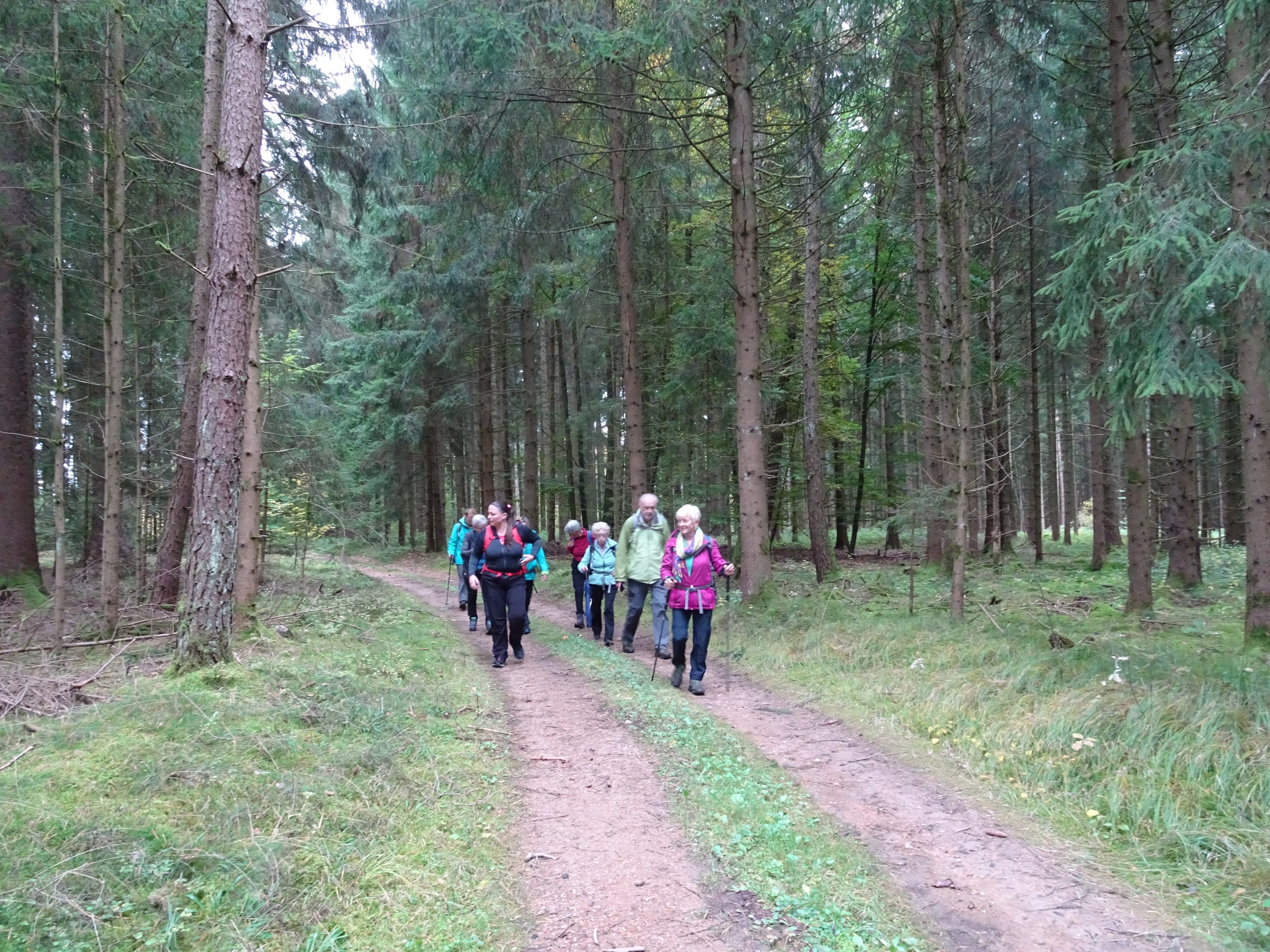 Die Langwandergruppe wanderte auf einem angenehmen, windgeschützten Waldweg leicht bergauf zum Häuslberg und dann nach Haselhof mit einem schönen Blick auf den Eixlberg. Nach der Mittagspause , etwas unbequem am Waldrand, ging es nach Neusath und Perschen. Inzwischen hatten auch die Schwammerlsucher ihre Taschen voll und deshalb wanderte die Gruppe relativ flott auf einem wunderschönen Uferpfad an der Naab entlang.Drei Feldkreuze am Ufer der Naab gaben etwas Rätsel auf. Der Besuch der Nikolauskirche im Ortsteil Venedig war wirklich lohnenswert. Diese ursprünglich dreischiffige Hallenkirche aus Quadermauerwerk wurde bereits Mitte des 12. Jahrhunderts errichtet. Während der Säkularisation teilweise abgebrochen und erst 1964 ohne vollständige Rekonstruktion wieder aufgebaut. Dann ging es zur verdienten Einkehr in die gemütliche Zoiglstube, denn inzwischen war es doch etwas frisch geworden. Die Zoiglstube Mutzi überraschte durch eine sehr originelle Einrichtung und Athmosphäre und das Zoiglbier schmeckte hervorragend. Auch wenn sich die Sonne nicht blicken ließ, war es ein angenehmer und interessanter Wandertag.